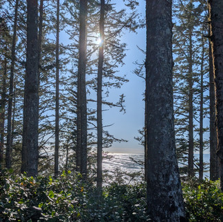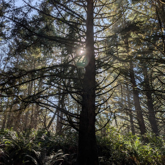 As beautiful as the view from the lookout was, it was also cold and windy. So, I headed back to the parking lot, down to the loop that offered more gorgeous views of the sun reflecting off of the ocean and her rays peering through the old growth forest, and around to the lighthouse.